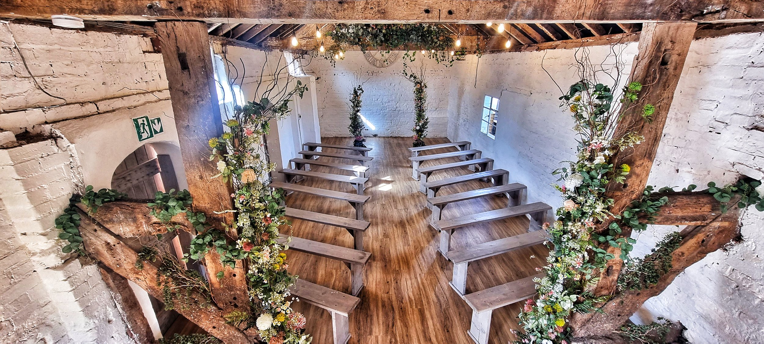 The Stables, our first licensed ceremony barn is testament to history and charm. Built in 1869, its rustic allure captivates couples seeking a traditional ceremony imbued with a sense of timelessness. The venue boasts oak beams that grace the interior, evoking a warm and intimate atmosphere reminiscent of a chapel. The chapel-like setting provides the perfect backdrop for a heartfelt ceremony, where up to 100 people can gather to witness the union of two souls. As natural light streams through the vintage windows, casting a soft glow upon the space, the couple exchanges their vows surrounded by the rich heritage and the enduring strength represented by the oak beams.